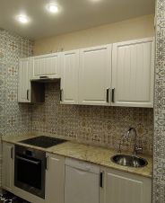 - Кухня (12 м²) с газовой духовкой, плитой (4 конфорки), вытяжкой, холодильником.