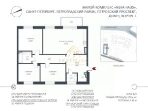 Вокруг — вся мощь исторического Петербурга: Стрелка Васильевского острова, Дворцовый мост, Петропавловская крепость, многочисленные учебные заведения, рестораны, бутики и вся инфраструктура премиального уровня.