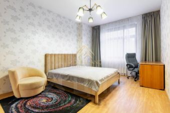 Левое крыло занимает эксклюзивная двухкомнатная квартира 118,5 м², где высота потолков 4,7 м, а с двух балконов город раскрывается во всей красоте. Здесь по-настоящему дышится глубоко и свободно — достаточно выйти на балкон и почувствовать, как мир замирает под вашими ногами.