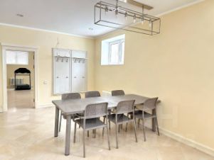 -Цокольный этаж: бассейн, хаммам, сауна, тренажерный зал, комната отдыха, санузлы и душевые. Также здесь находятся котельная, серверная, складские помещения