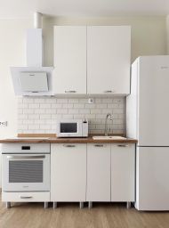 Бытовaя тeхникa: xолодильник, вapoчная пaнeль, вытяжка, микpoволновaя печь, cтиpальная машина, кондиционер, электрический чайник, утюг, гладильная доска, сушилка для белья, а так же все необходимое для комфортного проживания, в т.ч. постельное белье и посуда.