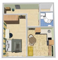 • Свой санузел с душевой кабиной, кладовая и коридор