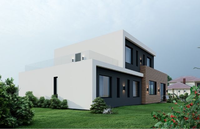 Это компактный дом для рачительных людей, состоящий из основного и дополнительных модулей, которые при необходимости могут быть приобретены и пристроены позже. Архитектура дома – современная, в стиле минимализма.