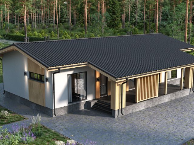Просторный быстровозводимый дом в классическом скандинавском экстерьере. Жилая площадь 150 кв.м. Проектируя дом LV 150, перед архитекторами стояла задача создать традиционный одноэтажный дом с функциональной планировкой для большой семьи.