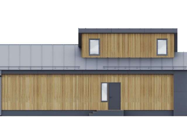Минималистичный дом с плоской кровлей, который со временем может расти с помощью добавления дополнительных модулей вбок и даже вверх, до двухэтажной версии.