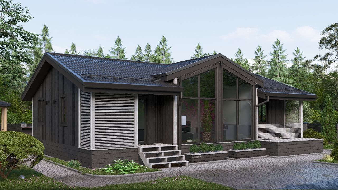 Этот дом спроектирован так, чтобы каждый квадратный метр приносил максимальную пользу. Наличие 3 спален позволит дому стать вашим уютным семейным гнездышком. Отдельная гардеробная и прихожая с дополнительным выходом обеспечивают места для хранения. Просторная гостиная с панорамными окнами располагает к единению с природой. А небольшая крытая терраса идельна для утренней чашечки кофе.