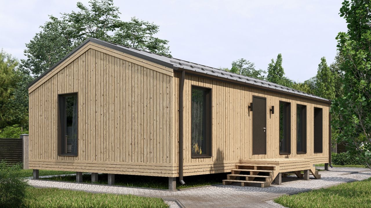 Функциональная планировка дома подходит для комфортного проживания небольшой семьи. Большая и светлая кухня-гостиная с панорамными окнами и выходом на уютную террасу, наличие мест для хранения, две спальни, один санузел и отдельная прихожая с дополнительным выходом.