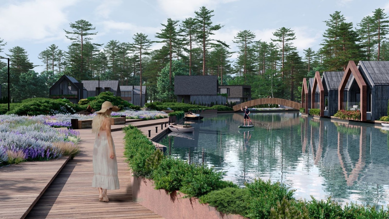 Форест Вилладж — это новый коттеджный поселок для любителей природы и прогрессивный природный кластер, расположенный в самом востребованном районе Лен.области. В этом проекте мы собрали все свои навыки и умения, весь опыт предыдущих лет, все стандартные и нестандартные запросы рынка и то, чего пока еще никто не предлагал, чтобы создать абсолютно новый образ жизни на природе. Наша основная цель — гармоничная добрососедская жизнь для продвинутого загородного сообщества. Форест Вилладж- это единая социальная среда, лаконичная архитектура, но основной акцент сделан на колоссальное количество прогулочных зон и велодорожек (16 км). Здесь также будет собственный судоходный канал с причалом для лодок. Наши каналы централизовано сообщаются с озером, которое образовалось благодаря карьеру с намывным песком, поэтому вода в канале лазурно-голубого цвета. В Форест Вилладж все в первую очередь сделано для людей, поддержания здорового образа жизни и добрососедства. На территории поселка будет несколько зон, где люди, объединенные единым интересом, могут обучаться садоводству. Для нас борьба за экологию — не пустой звук. Мы приучаем людей к ответственному отношению к природе, поэтому на территории поселка будет организован раздельный сбор мусора. В поселке будет своя электро заправочная станция. То, чем мы гордимся больше всего — это уникальная архитектура, собравшая с себе рациональность, лаконичность и гармонию с природой. Мы продаем поквартальную застройку с разными типами и площадью домов. Также можно построить дом самостоятельно, соблюдая строгий регламент застройки. В концепции строительства Форест Вилладж гармонично уживаются современные минималистичные дома с плоскими кровлями и архитектура в стиле Барнхаус.
