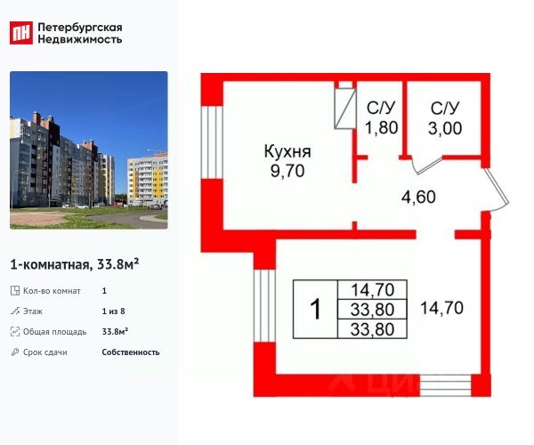 Продается 1-комнатная квартира 42 кв.м. на 16 этаже. В продаже квартира в жилом комплексе комфорт-класса "Ленский". Проект расположен в Южном микрорайоне Всеволожска, всего в 16 км от КАД, с удобным выездом на Колтушское шоссе и Дорогу Жизни — до центра Санкт-Петербурга около 30 минут. Локация сочетает природу и развитую инфраструктуру: рядом заповедники, пляжи, экотропы и усадьбы. Это спокойный ритм жизни среди сосен — с сохранением всех удобств городской жизни. В его состав входят два 18-этажных корпуса с видами на Колтушские высоты, сервисы повседневной инфраструктуры, собственный приватный двор, просторный паркинг для жителей и гостей. Девелопер проекта - федеральный застройщик ГК "Развитие". Транспортная доступность На автомобиле: • 30 мин до станции метро "ул. Дыбенко" • 35 мин до центра Санкт-Петербурга Архитектура Архитектурный облик отличается современным дизайном. Панорамные окна с большой площадью остекления наполняют квартиры светом, актуальная финская технология Peikko защищает квартиры от промерзания даже в северном климате. Дома прочные, долговечные, их конструкция гарантирует тёплый микроклимат зимой, прохладу летом и отличную звукоизоляцию. Планировочные решения Функциональные планировки отличаются простотой и эргономичностью, пространство эффективно используется даже на небольшой площади. К кухне примыкает просторная лоджия с панорамным остеклением, во всех двух- и трехкомнатных квартирах - по два санузла. Все квартиры сдаются с предчистовой отделкой, которая позволяет существенно сократить стоимость и сроки ремонта. По желанию доступны варианты чистовой отделки под ключ: "комфорт" и "бизнес" с использованием современных материалов. Благоустройство - приватный двор без машин; - всесезонное озеленение; - игровые площадки для малышей и подростков; - многофункциональная зона для спортивных игр с безопасным покрытием; - места для отдыха по всему периметру; - прогулочные дорожки в тени деревьев; - парадные с просторными холлами и высокими потолками; - безбарьерная среда; - магазины, аптеки и пункты выдачи на первых этажах ЖК, всё в шаговой доступности. Окружение - 5 парков: заповедник "Колтушские высоты", парк "Софиевка", "Румболовский", "Кенша", Державинский и Алексеевский парки. За 5-10 минут можно добраться транспортом до Песчанки и Петропавловского парка. Ковалевский лесопарк выделяется прекрасными экотропами, зонами для пикников и велодорожками, а Ждановские озера - благоустроенными пляжами; - рядом Колтушинский фреш-маркет с фермерскими продуктами и крупный ТЦ "Юбилейный", где работают более 70 магазинов, кинотеатр и фуд-корт; - 10 детских садов, начальная и средняя школы, центры дополнительного образования, творческие секции; - в ближайшей доступности фитнес-центры, бассейн, теннисный клуб и даже центр верховой езды; - культурные и знаковые места: Музей-усадьба "Приютино", музей "Дом Авиаторов", мемориальный комплекс "Дорога Жизни", многочисленные пешеходные маршруты."
