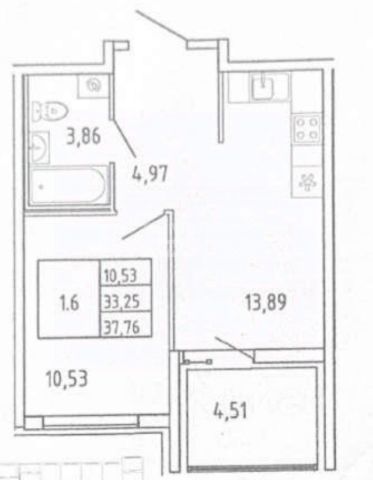 Общая площадь 30,1 кв.м. Жилая площадь -15,7 кв. м. Кухня - 6,8 кв.м. С/У - совмещенный. Высота потолка - 2,55 м.