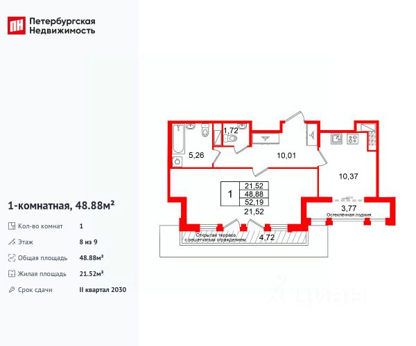 Купить 1-комнатную квартиру 50 м2 в Санкт-Петербурге