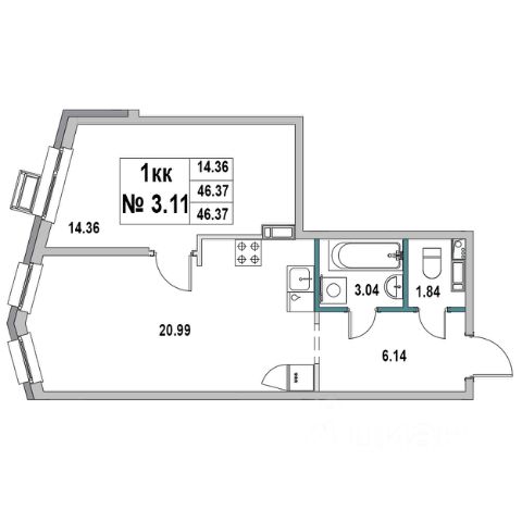 Продаётся 1-комнатная квартира в строящемся доме (Дом 1), срок сдачи: IV-кв. 2025, общей площадью 46.37 кв.м., на 3 этаже. Новый жилой дом от застройщика "Унистрой" расположен по адресу Ленинградская область, Выборг, 2-я Южная улица.