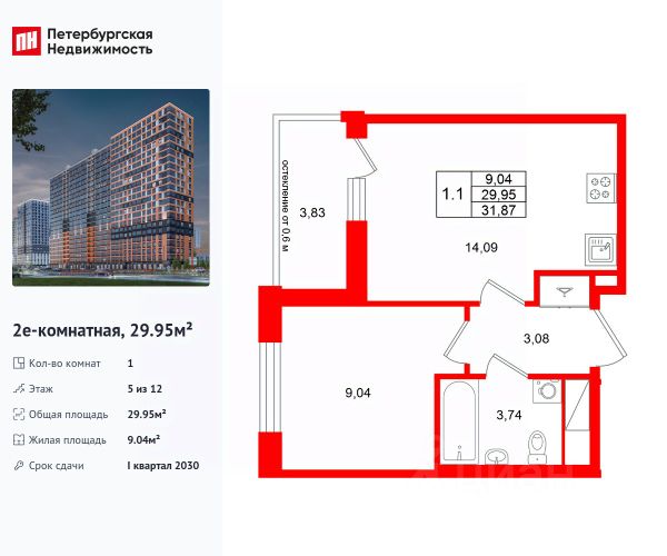 Продается уютная 1-комнатная квартира от застройщика в жилом комплексе "Город звезд" в новом городе на правом берегу Невы. До метро можно добраться на транспорте всего за 13 минут. Удобная, классическая, функциональная европланировка, большая кухня-гостиная 14.04 м², вместительная прихожая 3.05 м². Общая площадь квартиры - 29.4 м², жилая 8.44 м², высота потолка 2.77 м. Квартира продается с отделкой "Норд Лайн светлый". Что особенного в ЖК "Город звезд"? • Инновационный Лицей Setl с оригинальной архитектурной концепцией и уникальной образовательной средой • Невский лесопарк под окнами - всегда свежий воздух и полноценный отдых на природе • Четыре тематические площади отдыха с разнообразным благоустройством • Аллея Звёзд - променад протяженностью 5 км с ландшафтным озеленением, зонами отдыха и велодорожкой • Выход на набережную реки Утки, где можно порыбачить или взять напрокат лодку • Единая входная группа с ресепшен и подземный паркинг