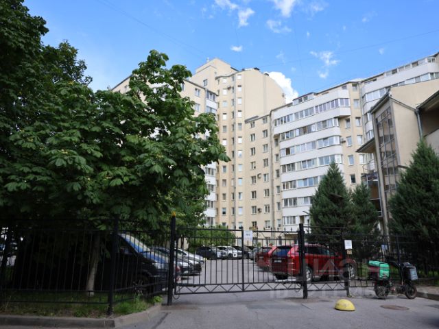 Окна выходят на закрытый двор, в котором располагается детская площадка и паркинг. На первом этаже располагается консьерж. В доме располагается крышная котельная, благодаря чему нет сезонного отключения горячей воды. Коммунальные услуги ниже, чем в соседних домах. В парадной два лифта: пассажирский и грузовой.