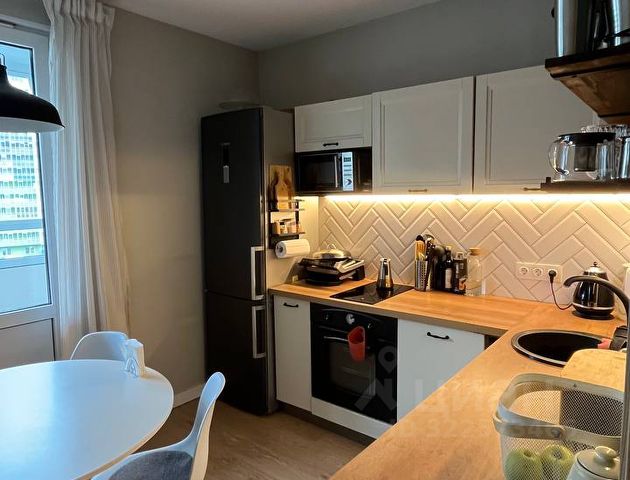 Кухонный гарнитур с качественными фасадами и фурнитурой Blum, укомплектован бытовой техникой в идеальном состоянии: духовой шкаф, микроволновая печь, вытяжка, плита, посудомоечная машина, встраиваемый холодильник, фильтр для воды Аквафор, телевизор.