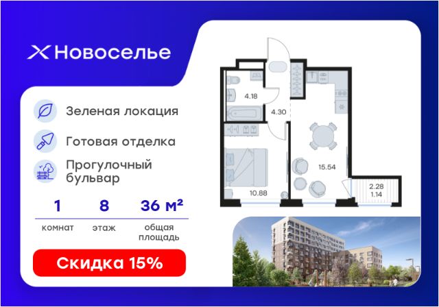 Продаётся 1-комн. квартира площадью 34,5 кв.м на 12 этаже 12 этажного дома (Корпус 4.1, Секция 1) проекта ПИК Таллинский парк. Светлый просторный подъезд на уровне земли, функциональная планировка, большие окна, без отделки. "Таллинский парк" - проект в Ленинградской области, в районе Новоселье. До станции метро "Проспект Ветеранов" - 15 минут на автомобиле, а до КАД можно доехать всего за 4 минуты. "Таллинский парк" включает 16 жилых домов, детский сад и школу. В проекте появится центральный сквер с обильным озеленением, а через весь квартал протянутся широкие пешеходные бульвары. В зелёных дворах-парках будут оборудованы современные детские и спортивные площадки, обустроены места для отдыха. На первых этажах разместятся магазины, кафе и другие сервисы. Проектом предусмотрены персональные кладовые помещения - это доступный, экономичный и удобный способ хранения сезонных и крупногабаритных вещей. Освободите свою квартиру для полноценной жизни. Район Новоселье активно развивается в городском формате: здесь уже работают детские сады, школа и магазины. Для любителей зимних видов спорта открыта круглосуточная ледовая арена. За покупками и развлечениями также можно быстро доехать: 10 минут - и вы в Аутлете Таллинское, гипермаркетах Лента, Леруа Мерлен и Окей. В 10 минутах на автомобиле находится Финский залив, на берегу которого расположились объекты культурного наследия. Рядом - Константиновский парк с отреставрированным дворцом, а чуть дальше расположена усадьба Знаменка. В великолепном Петергофе вы будете уже через 20 минут. Артикул 1026291 (Застройщик ООО "СПЕЦИАЛИЗИРОВАННЫЙ ЗА СТРОЙЩИК "СТРОЙ-ЭКСПЕРТ ") [cn_sbp_1807166]