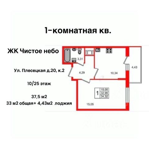 • ✓ В базе Циан 7 1-комнатных квартир без ремонта на аллее Арцеуловская в Санкт-Петербурге