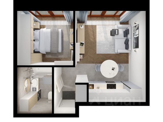 2-х сторонняя, общим пространством ( Четыре капитальных стены и четыре окна ), площадью 38,91кв.м (фактическая площадь 41,91кв.м.)