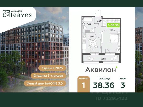 Купи квартиру в ЖК "Аквилон Leaves"! Отделка В квартире выполнена предчистовая отделка WhiteBox +Возможен дозаказ отделки в любом из 3 цветов: SAND, TERRA, GRAPHITE Отделка входит в стоимость квартиры в ДДУ ЖК "Аквилон Leaves" Жилой комплекс класса бизнес-лайт "Аквилон Leaves" воплощает идеальную синергию природы, технологий и дизайна. В одном из самых престижных районов Санкт-Петербурга мы создаем функциональную жилую среду, которая позволит максимально быстро и удобно решать бытовые вопросы, сохраняя ценное время для семьи и любимых занятий. -Малошумные лифты -Сквозные парадные -Светопрозрачные входные группы -Увеличенная высота первого этажа -Безбарьерная среда -Подземный паркинг Стандарты Группы Аквилон для вашей комфортной жизни Thermo-S экономия на коммунальных платежах за счет дополнительно утепленных стен, кровли и цоколя. Энергоэффективные окна с селективным покрытием и аргоновым заполнением Soundstop - дополнительная шумоизоляция внутренних перегородок и межэтажных перекрытий, шумозащитные окна, малошумные лифты Light-in - в квартирах устанавливаются широкоформатные окна, увеличены на 30%. Высота подоконников на уровне 60 см от пола. Vent-in - в каждой комнате есть клапаны индивидуальной вентиляции, которые обеспечивают приток свежего воздуха с улицы. inHOME умный дом в каждой квартире Интеллектуальная цифровая система, которая позволит дистанционно решать бытовые вопросы, управлять квартирой и экономить на оплате коммунальных услуг. В состав inHOME входят: IP-домофон, Face key, "умные" счетчики, датчики протечки, дистанционное отключение розеток, и т.д. Двор ваш личный парк Благоустройство двора от студии ландшафтного дизайна MEGABUDKA отсылает нас к образу зеленого листа. Современная архитектура гармонирует с окружающей средой, а экологические стандарты и "умные" системы обеспечивают ежедневный комфорт. -Зонирование на площадки для активного и спокойного отдыха. -Ландшафт с геопластикой и рельефом напоминает естественную красоту природных парков. -Всесезонные растения -Высаживаются взрослые деревья и кустарники Локация и инфраструктура Помимо разнообразной инфраструктуры, рядом с комплексом расположен Пулковский парк и сад "Дубовая роща". У жителей будут все возможности для отдыха на свежем воздухе. Велопрогулка, пробежка или летний пикник наслаждайтесь природой, не уезжая далеко загород. -10 мин. до м. Московская -15 мин. до м. Звездная -15 мин. до аэропорта Пулково -30 мин. до Невского пр. #ZZw47F
