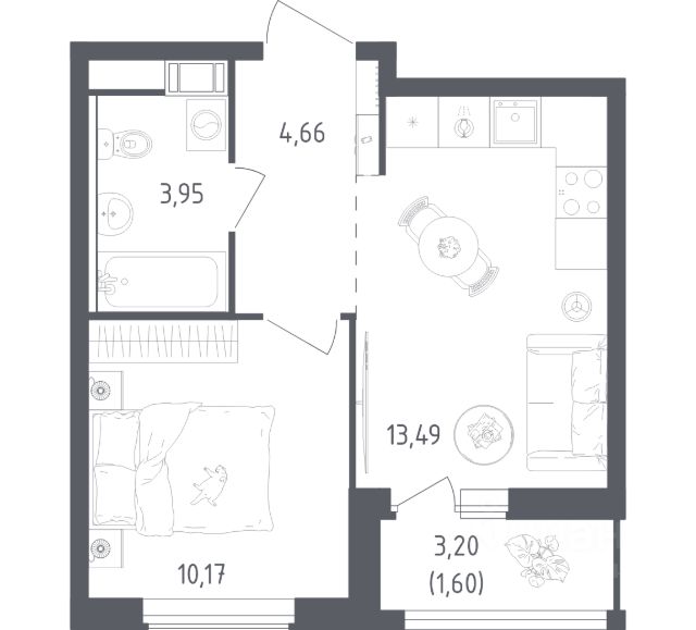 В продаже 1-комнатная квартира в корпусе 6-7 ЖК 'Живи! В Рыбацком'. Квартира располагается на 6 этаже, общая площадь 39.17 м2.