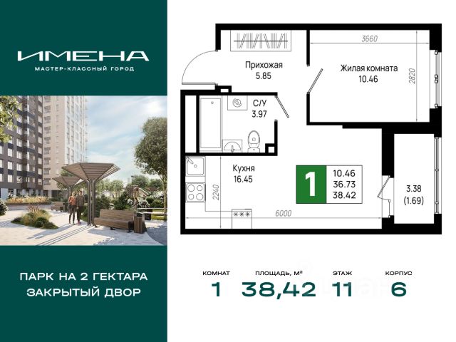 В живописном районе на юге Санкт-Петербурга, рядом с берегом Невы и Невским лесопарком, продается 1-комнатная квартира площадью 25.51 кв. м, расположенная на 4 этаже 23-этажного дома 6. Квартира находится в жилом комплексе комфорт-класса "Имена" от ГК "ССК". О проекте Жилые кварталы "Имена" - это проект, призванный стать отправной точкой для самой значимой главы вашей личной истории. Здесь созданы все условия для формирования крепких семейных ценностей, реализации амбиций и поиска источников для новых достижений. Уникальное расположение на стыке городской динамики и природной красоты обеспечивает максимальный комфорт и сбалансированный образ жизни. Это место для тех, кто мастерски видит перспективы, но хочет жить комфортно уже сейчас. Комфорт без компромиссов Квартиры с особым вниманием к деталям: витражное остекление балконов, высокие потолки (до 2,75 м), микроклиматические клапаны на окнах, разводка коммуникаций и электрики, а также интеллектуальный учёт энергоресурсов. Ваш новый дом - это территория под надежной защитой. Умный шлагбаум и передовые системы видеонаблюдения гарантируют безопасность. Передвижение по этажам легкое и приятное благодаря скоростным бесшумным лифтам, а для велосипедов и колясок предусмотрены специальные закрытые помещения. Мы позаботились обо всем: от теплых и гостеприимных холлов до вместительных кладовых. Оцените удобство бесконтактных домофонов с управлением через мобильное приложение и легкий доступ благодаря входам на уровне земли. Успейте приобрести квартиру на выгодных условиях уже сегодня! Доступна ипотека, рассрочка на 6 и 12 месяцев, а также полная оплата. * Возможности для отдыха Сердцем жилого комплекса "Имена" станет бульвар длиной более 1200 метров с парком площадью 2 гектара - пространство, где каждая деталь направлена на создание условий для комфортного отдыха и продуктивной работы на свежем воздухе. Лаунж-зоны с WI-FI, многоуровневое освещение и тщательно спроектированное озеленение превращают это место в идеальное сочетание природы и технологий, где приятно бывать в любое время дня. Для тех, кто предпочитает спокойные практики, предусмотрена крытая площадка для йоги, медитаций и групповых занятий. Любители активного образа жизни оценят воркаут-площадки, уличные тренажеры, беговые дорожки с мягким покрытием и велотреки с датчиками для подсчёта пройденных кругов. Всё рядом Всё необходимое для комфортного проживания находится внутри квартала: - Общественный центр для жителей: пространство для общения, обучения, творчества и саморазвития. - Открытый кинотеатр с показами фильмов и мини-концертами. - Фермерский рынок, где всегда можно купить свежие продукты, цветы и авторские товары ручной работы. - Современные школа и детский сад. - 10 многоуровневых наземных паркингов на 3500 машино-мест; - Магазины, кафе, рестораны, фитнес-клубы и салоны красоты на первых этажах домов. "Имена" - кварталы, где создаётся будущее. *Подробности о способах покупки квартиры уточняйте по телефону офиса продаж.