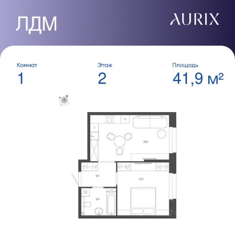 Продается 1-к квартира без отделки в ЖК "ЛДМ". Общая площадь квартиры — 41.9 кв. м, этаж 2 из 9. Тип дома — монолитный. Цена указана при 100% оплате. Описание из материнского фида