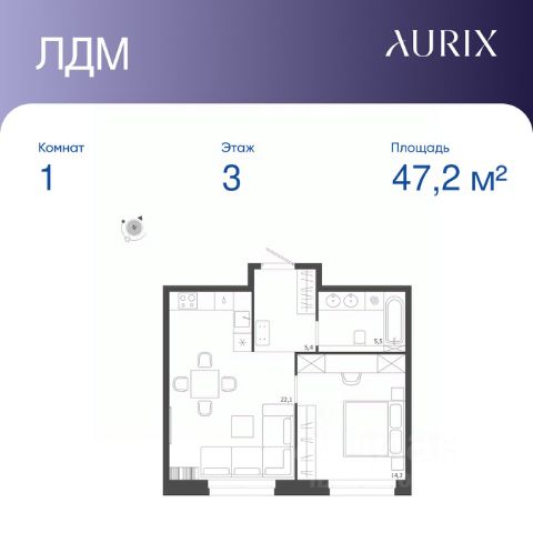 Продается 1-к квартира без отделки в ЖК "ЛДМ". Общая площадь квартиры — 47.2 кв. м, этаж 3 из 9. Тип дома — монолитный. Цена указана при 100% оплате. Описание из материнского фида