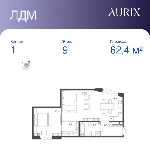 Продается 1-к квартира без отделки в ЖК "ЛДМ". Общая площадь квартиры — 62.4 кв. м, этаж 9 из 9. Тип дома — монолитный. Цена указана при 100% оплате. Описание из материнского фида