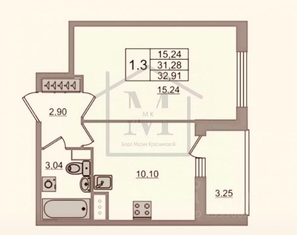 общая площадь 30,38 кв.м., жилая комната 16,7 кв.м., кухня 5,6 кв.м., коридор 4,58 кв.м., с/у совмещенный, в коридоре и комнате находятся закрытые кладовки (шкафы купе), есть балкон.