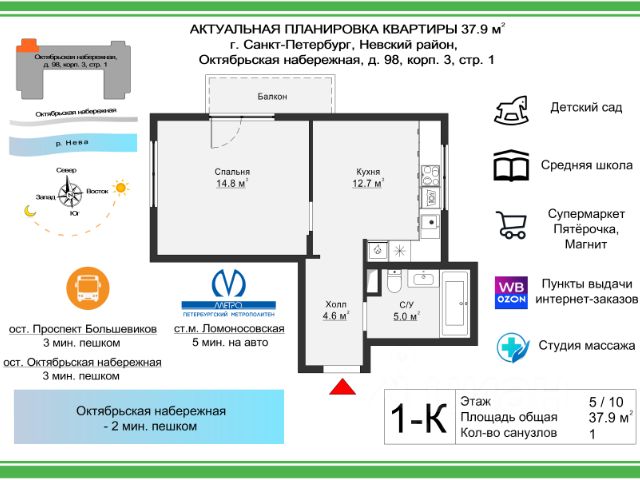 Продается квартира площадью 35.47 м² на 13 этаже 1 секции в Речной квартал от компании ГК "ТРЕСТ". Площадь кухни 13.87 м². Семейный жилой комплекс комфорт-класса "Речной квартал" от Группы компаний "ТРЕСТ" расположен в Невском районе Петербурга на пересечении Октябрьской набережной и Русановской улицы. Первая очередь квартала состоит из трёх корпусов, расположенных лучеобразно, чтобы максимально использовать естественное освещение и обеспечить видовые точки на локацию. Проект выделяется современными архитектурными решениями и дизайном. Концепция развития и благоустройства придомовой территории разделена на зоны отдыха, досуга и игровые площадки с учетом возраста и потребностей детей и взрослых. Квартал рассчитан на семейных покупателей, поэтому здесь нет студий: только одно-, двух- и трёхкомнатные квартиры. В проекте представлены квартиры с кухнями-гостиными, мастер-спальнями, гардеробными и кладовыми. "Речной квартал" - современный жилой комплекс с разнообразным благоустройством придомовой территории, просторными европланировками, закрытой охраняемой территорией и подземными паркингами. На территории комплекса уже функционирует детский сад на 110 мест. Также в квартале будет построена общеобразовательная школа на 475 мест с бассейном и стадионом. Открытие школы запланировано на 2029 год. Квартиры в ЖК "Речной квартал" можно приобрести с готовой отделкой от застройщика. Для покупателей квартир предусмотрено два варианта чистовой отделки "Ваниль" и "Шоколад". Чистовая отделка в квартирах ЖК "Речной квартал" предполагает монтаж натяжных потолков, укладку ламината, оклейку стен обоями под покраску, установку светильников и межкомнатных дверей. При отделке новой квартиры применяются качественные, натуральные и экологичные материалы, монтируется стильная импортная сантехника европейских брендов. В объявлении указана стоимость квартиры при 100% оплате. При других формах оплаты - базовую стоимость квартиры уточняейте на официальном сайте компании или у менеджера отдела продаж. Застройщик АО "Специализированный застройщик "Строительный трест".