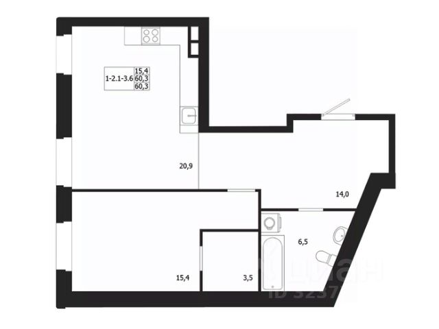Жилая площадь 64.59 м2, кухня 12.11 м2, черновая отделка.