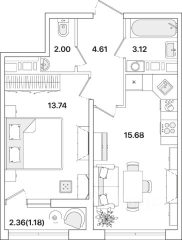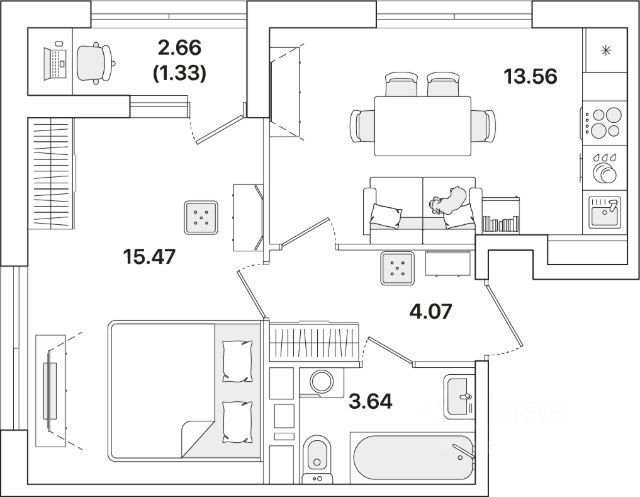 Посмотрите, что мы нашли! 1-комнатная квартира в ЖК Академик!