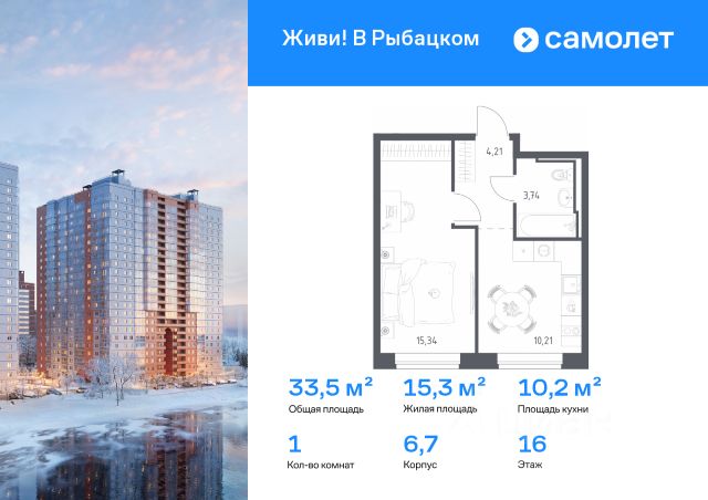 Строим кварталы для жизни с заботой о будущем. Предлагается 1-комнатная квартира комфорт-класса 31,17 кв.м в корпусе 6,7 на 13 этаже, в ЖК "Живи! В Рыбацком" Квартира без отделки. Доступность опции "отделка" и возможность комплектации мебелью и декором уточняйте у застройщика. Приобрести квартиру возможно по специальным акциям от застройщика, с текущими условиями акций можно ознакомиться в блоке "Акций". Цена динамическая и может отличаться, уточняйте актуальность у застройщика. Квартал "Живи! В Рыбацком" в Невском районе Санкт-Петербурга расположен рядом с рекой Славянкой и парком. Всего 20 минут пешей прогулки — и вы у метро "Рыбацкое". Автомобилисты будут добираться до КАДа за десять минут. В квартале работают два детских сада, школа и кабинет врача. На первых этажах зданий открыты магазины, кафе и салоны красоты. Во дворе — зеленые бульвары, воркаут-площадка, спортивный и игровой кластеры. Для машин — подземный паркинг. Кирпично-монолитные дома с каменной облицовкой — воплощение долговечности и тепла. Есть в квартале и камерный 30-й корпус, в нем восемь этажей, 70 квартир и приватный двор-парк. В сквозных парадных — безбарьерная среда, помещения для хранения колясок и велосипедов и система видеонаблюдения.