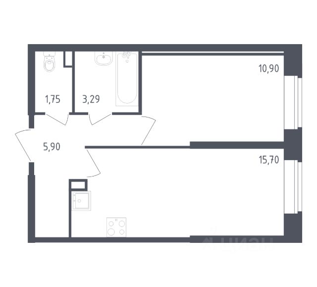 В продаже 1-комнатная квартира в корпусе 6-7 ЖК 'Живи! В Рыбацком'. Квартира располагается на 3 этаже, общая площадь 39.17 м2.