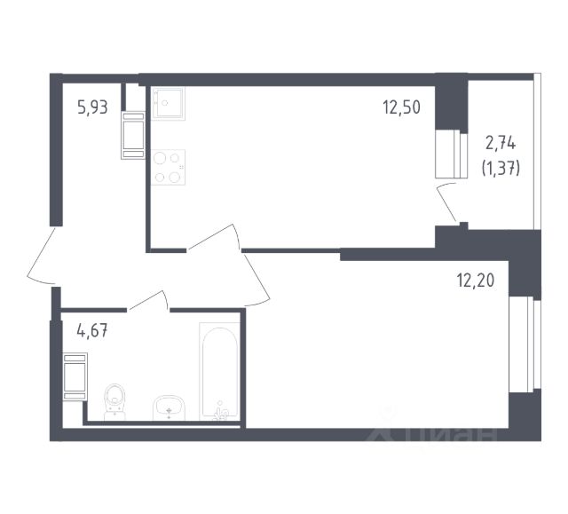 В продаже 1-комнатная квартира в корпусе 30 ЖК 'Живи! В Рыбацком'. Квартира располагается на 6 этаже, общая площадь 34.2 м2.