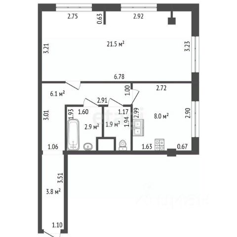 • ✓ В базе Циан 1 1-комнатных квартир без ремонта на улице Архитектора Белова в поселке Парголово в Санкт-Петербурге