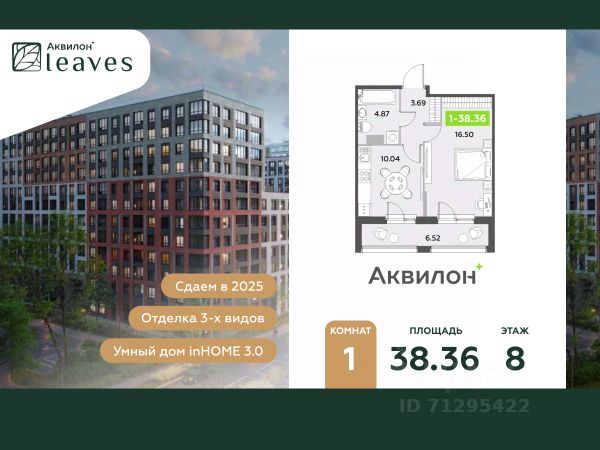 Купи квартиру в ЖК "Аквилон Leaves"! Отделка В квартире выполнена предчистовая отделка WhiteBox +Возможен дозаказ отделки в любом из 3 цветов: SAND, TERRA, GRAPHITE Отделка входит в стоимость квартиры в ДДУ ЖК "Аквилон Leaves" Жилой комплекс класса бизнес-лайт "Аквилон Leaves" воплощает идеальную синергию природы, технологий и дизайна. В одном из самых престижных районов Санкт-Петербурга мы создаем функциональную жилую среду, которая позволит максимально быстро и удобно решать бытовые вопросы, сохраняя ценное время для семьи и любимых занятий. -Малошумные лифты -Сквозные парадные -Светопрозрачные входные группы -Увеличенная высота первого этажа -Безбарьерная среда -Подземный паркинг Стандарты Группы Аквилон для вашей комфортной жизни Thermo-S экономия на коммунальных платежах за счет дополнительно утепленных стен, кровли и цоколя. Энергоэффективные окна с селективным покрытием и аргоновым заполнением Soundstop - дополнительная шумоизоляция внутренних перегородок и межэтажных перекрытий, шумозащитные окна, малошумные лифты Light-in - в квартирах устанавливаются широкоформатные окна, увеличены на 30%. Высота подоконников на уровне 60 см от пола. Vent-in - в каждой комнате есть клапаны индивидуальной вентиляции, которые обеспечивают приток свежего воздуха с улицы. inHOME умный дом в каждой квартире Интеллектуальная цифровая система, которая позволит дистанционно решать бытовые вопросы, управлять квартирой и экономить на оплате коммунальных услуг. В состав inHOME входят: IP-домофон, Face key, "умные" счетчики, датчики протечки, дистанционное отключение розеток, и т.д. Двор ваш личный парк Благоустройство двора от студии ландшафтного дизайна MEGABUDKA отсылает нас к образу зеленого листа. Современная архитектура гармонирует с окружающей средой, а экологические стандарты и "умные" системы обеспечивают ежедневный комфорт. -Зонирование на площадки для активного и спокойного отдыха. -Ландшафт с геопластикой и рельефом напоминает естественную красоту природных парков. -Всесезонные растения -Высаживаются взрослые деревья и кустарники Локация и инфраструктура Помимо разнообразной инфраструктуры, рядом с комплексом расположен Пулковский парк и сад "Дубовая роща". У жителей будут все возможности для отдыха на свежем воздухе. Велопрогулка, пробежка или летний пикник наслаждайтесь природой, не уезжая далеко загород. -10 мин. до м. Московская -15 мин. до м. Звездная -15 мин. до аэропорта Пулково -30 мин. до Невского пр. #Z6M20e