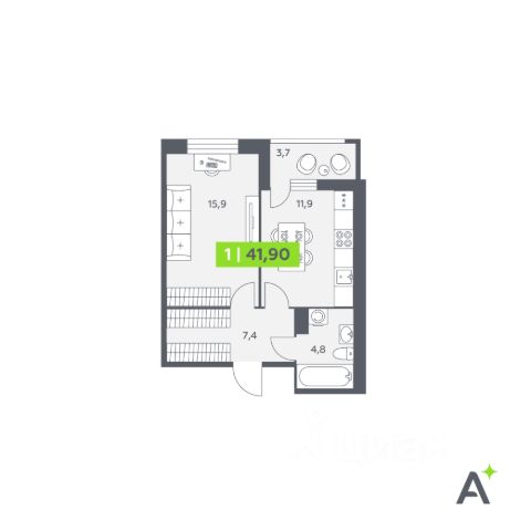 - комната - 11,5 кв.м. (с выходом на лоджию);