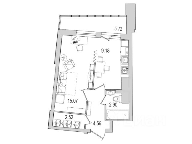 Видовая однокомнатная квартира 39.9 кв.м. с большим балконом! Отделка "Морошка". Прямая продажа. Полная стоимость в договоре. Без обременений. Кухня - столовая 9.2 кв.м. с выходом на большой балкон 5.7 кв.м. Жилую комнату 15.1 кв.м. можно разделить на гостевую, спальную зоны. Гардеробная 2.5 кв.м. Прихожая 4.6 кв.м. Санузел раздельный. Вид из окон на улицу. В квартире выполнена отделка "Морошка": стены оклеены обоями теплого оттенка(под покраску), на полу - ламинат, потолки - натяжные, в санузлах на полу и стенах керамическая плитка, установлена качественная сантехника, на балконе пол выложен плитой, потолок окрашен, установлены межкомнатные двери и качественная металлическая дверь. Квартира полностью готова к проживанию. Жилой комплекс комфорт-класса "Байрон" с закрытой, благоустроенной территорией, с детскими, спортивными площадками и зонами для отдыха. В пешей доступности детские сады, школы, аптеки, поликлиники, магазины продуктовых сетей, кафе, ТРК "Северный Молл", "Норд", "Гранд Каньон". Остановка общественного транспорта в 3-х минутах ходьбы. До ближайшей станции метро "Пр. Просвещения" - 22 минуты пешком. Отличным местом для прогулок станут парки "Сосновка" и "Муринский парк". Показы в любое удобное время по предварительной записи, звоните! Индекс квартиры 17/1-46б. Продается 1-комнатная квартира с большим балконом в районе Выборгский в Санкт-Петербурге.