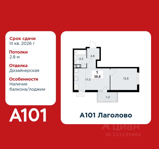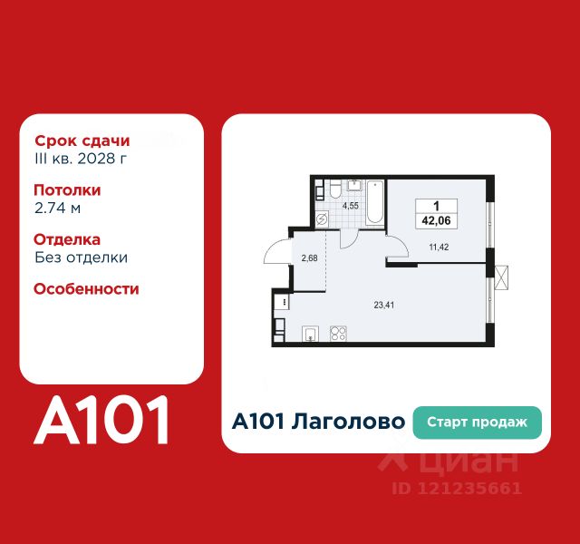 ПЕРЕУСТУПКА ПРАВА! Продаётся квартира в новостройке — ЖК "А101 Лаголово" , корп. 1.1 Общая площадь квартиры — 34,6 кв. м., этаж 3 из 9, секция 1 Без отделки Тип проекта, по которому построен дом — монолит Компания-застройщик — ГК "А101". Срок сдачи — 4-й квартал 2025 ОТДЕЛКА Квартира передается без отделки. Благодаря тому, что в данном типе отделки стены не возводятся, вы сможете создать удобную планировку и самостоятельно организовать зонирование комнат. ОСОБЕННОСТИ ПЛАНИРОВКИ Мезонин - полуэтаж с большим количеством естественного света. На втором уровне можно организовать спальню или кабинет. Патио - это собственный дворик или терраса с выходом из квартиры во двор, огорожен живой изгородью, пол надежно защищен бетонной плитой. ПАРАДНАЯ В каждой парадной предусмотрены места для хранения велосипедов и колясок, гостевой санузел, лапамойка (место для мытья домашних животных или колес велосипедов) и удобная зона ожидания для гостей. ДВОРЫ И ОКРУЖЕНИЕ Просторные дворы свободны от машин и закрыты от посторонних. Большую часть комплекса займут благоустроенные зелёные зоны, теневые сады и городские общественные пространства с развитой тротуарной сетью и велодорожками. Каждый дом оборудован системами видеонаблюдения и контроля доступа. "А101 Лаголово" - современный город у подножия знаменитых Дудерговских высот, в объятиях чистейших озёр и зелёных живописных массивов, наполненный всем необходимым для счастливой жизни. ИНФРАСТРУКТУРА. Мы занимаемся комплексным освоением территории. Наш приоритет - доступность всех сервисов для счастливой жизни. 1. Лаголово-город 15-ти минутной доступности. Вся необходимая инфраструктура: магазины, салоны красоты, образовательные учреждения, медицинские центры находятся в 15-ти минутах пешей прогулки от любой точки жилого комплекса. Это позволяет не тратить время на долгие перемещения. 2. Представьте идеальный город, где ребенок может спокойно играть, а пожилой человек наслаждаться заслуженным отдыхом. Жилая среда нашего комплекса может комфортно использоваться как 8-летним ребенком, так и 80-летним пожилым человеком. Дома, улицы, общественные пространства, тротуары спроектированы с заботой о людях разных возрастов. 3. Мы активно развиваем авторскую образовательную экосистему "Лёрнити". Она включает строительство 8 современных детских садов (2000 мест) и 3 школ (2945 учащихся). Мы учим родителей гармонично общаться с детьми, помогаем малышам подготовиться к школе, а подросткам - выбрать будущую профессию и развить таланты.