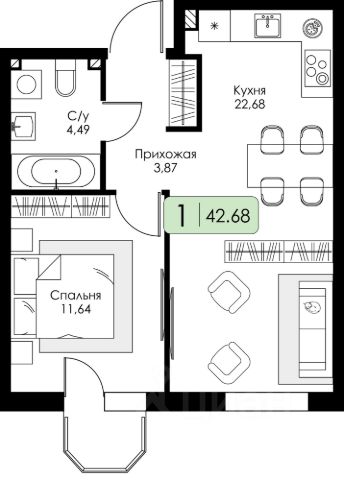 1 - комнатная квартира на 6 этаже общей площадью 37,63 м² в жилом комплексе Арт Парк от застройщика ГК Алгоритм.