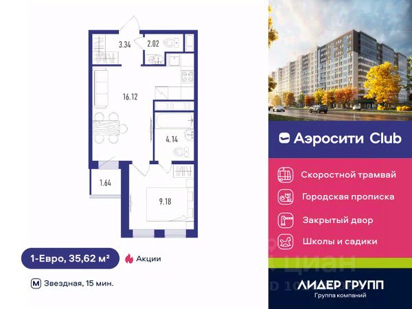 Представляем вашему вниманию привлекательное предложение однокомнатную квартиру площадью 34,9 кв.м. в динамично развивающемся поселке Шушары, по адресу Московское шоссе, 329к1.