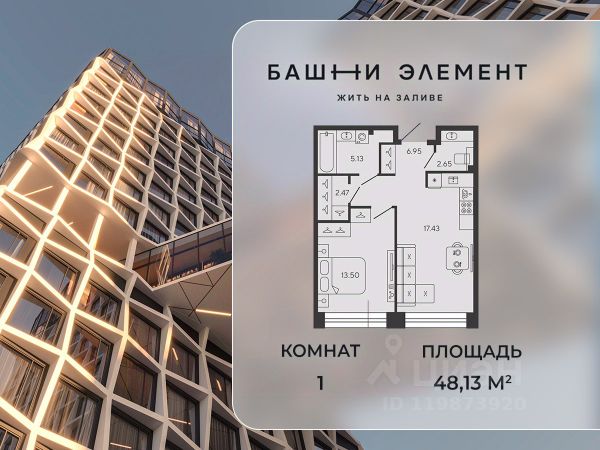 Квартира 382 в корпусе Купрум проекта бизнес-класса "Башни Элемент". "Башни Элемент" новый жилой проект бизнес-класса на Васильевском острове от девелоперской компании "ELEMENТ". В его составе 5 башен, две из которых соединены первым в Санкт-Петербурге "небесным мостом" с клубной инфраструктурой. Первая линия Финского залива (южная часть намыва Васильевского острова), 80% квартир с видом на воду Футуристичная архитектура от "А.Лен" 5 разновысотных башен: КАРБОН, КУПРУМ, ТИТАН, ПЛАТИНА и ВОЛЬФРАМ (от 18 до 22 этажей) 1026 квартир от студий до 6-комнатных планировок формата "евро", в башнях ТИТАН и ПЛАТИНА 12 видовых пентхаусов Многофункциональный зал для событий, гостиная с кухонной зоной и террасой, коворкинг с "тихими" кабинетами, залы для йоги и персональных тренировок, комната для медитаций, кинозал, библиотека с гостиной и появятся в клубном пространстве "небесного моста" на площади 1000 м2 В стилобатной части проекта "ELEMENT" создаст инфраструктуру, ориентированную в том числе на поколение "альфа" IT-школу с мультимодальным обучением, образовательно-развлекательный кластер, творческие мастерские, а также семейный центр с рестораном и фитнес-клуб с 25-метровым бассейном, тренажерным залом и фитнес-зоной Ландшафтный парк со спортивными зонами, детскими площадками и местами для отдыха площадью 2600 м2 Подземный паркинг с двухуровневым хранением на 552 авто, еще 88 мест на открытой автостоянке ELEMENT создаёт инновационные жилые и коммерческие объекты в Санкт-Петербурге и Москве, которые устанавливают новые стандарты эффективной жизни в мегаполисах.