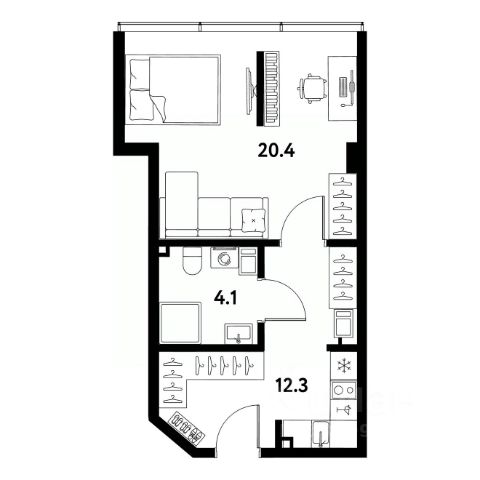 - 2ЕВРО квартира с кладовкой: комната 16,8 м2 и кухня-гостиная 11,8 м2, оборудованный санузел, просторная прихожая;
