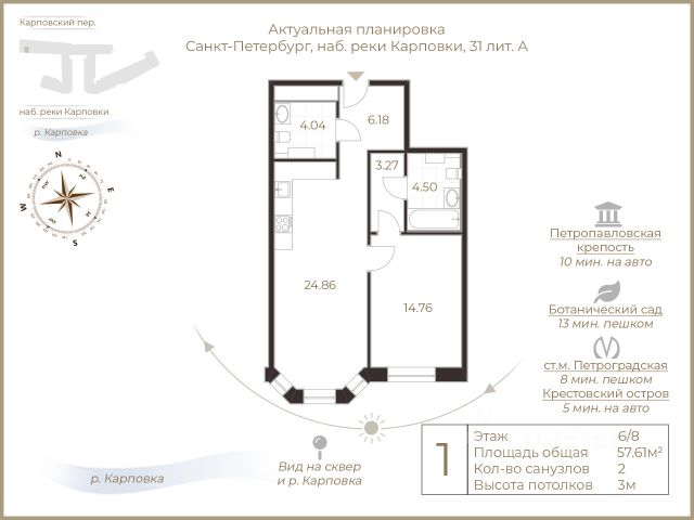 Продается 1-комн. квартира с предчистовой отделкой в ЖК "Черная Речка, 41" на 9 этаже. Общая площадь: 48.59 кв.м., жилая: 11.44 кв.м., площадь просторной кухни-столовой: 23.72 кв.м. Все окна выходят на одну сторону. В квартире один балкон, один раздельный санузел. Высота потолков 3.0 м. ЖК "Черная Речка, 41" находится в престижной и перспективной части Приморского района с аристократическим прошлым. Современные инженерные и технические решения, повышающие качество жизни TechnoBox включают в себя: стационарный и удаленный контроль дома, систему Air Design здоровое дыхание без лишнего шума, мультисервисную сеть, объединяющую коммуникационные системы. Квартира готова к декорированию. Застройщиком сделана шумоизоляция; стены подготовлены для отделки; проведена электрика с учетом рекомендаций по расстановке мебели и бытовой техники; выровнен пол. В каждой квартире установлена взломостойкая входная дверь, окна со специальным термоизолированным алюминиевым профилем. В ЖК "Черная Речка, 41" уникальные планировки. Здесь есть квартиры с панорамными террасами, эркерами, французскими балконами. Во дворе комплекса несколько функциональных зон. Здесь предусмотрены детские площадки с канатной дорогой и мягким конструктором, зона для игр и занятий спортом, места для отдыха взрослых, столы для настольных игр и амфитеатр. В ближайшем будущем рядом с комплексом откроется детский сад с бассейном. Срок сдачи 4 квартал 2025 года. В подземном паркинге 483 м/м. Спуститься в паркинг можно на лифте прямо со своего этажа. В районе ЖК "Черная Речка, 41" хорошо развита инфраструктура и близко находятся скоростные магистрали. В шаговой доступности расположены: Строгановский парк (2 минуты), станция метро "Чёрная речка" (8 минут), река Нева (10 минут), а также Ботанический сад Петра Великого, Каменный и Елагин остров.