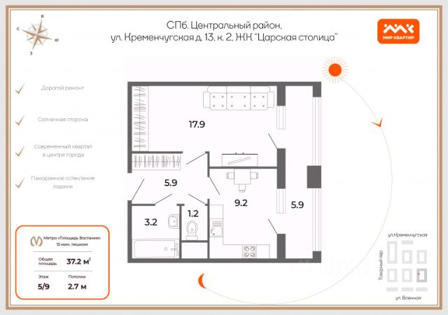 Клубный дом "МИРЪ" в самом центре Петербурга — воплощение идеальной картины мира для истинных ценителей прекрасного. Дом строится на Миргородской улице, в двух шагах от Невского проспекта и Московского вокзала. Из окон квартир приятно созерцать красоту Феодоровского собора и вдохновляться захватывающей панорамой Петербурга. В шаговой доступности — метро "Площадь Восстания", крупные торговые центры и "Старо-Невский" проспект с бутиками мировых премиум-брендов. Утром достаточно выйти из парадной, чтобы через 5 минут расположиться в кресле "Сапсана" и с комфортом добраться до Москвы. Путь до КАД и ЗСД на автомобиле займёт не более 15 минут, до аэропорта "Пулково" — полчаса. Камерная атмосфера создаётся за счёт деления на два корпуса и небольшого количества квартир в доме — их всего 263. Корпуса объединены триумфальной аркой, которая формирует закрытый контур внутреннего двора. Статус дома подчеркивают парадные холлы с арочными пролётами, витражным остеклением и произведениями искусства. Автомобилисты смогут спуститься в подземный паркинг на лифте прямо со своего этажа. Гостевую стоянку организуют вне комплекса — чтобы не нарушать безопасность двора. Для жителей в доме появится приватный фитнес-зал. Также в большом корпусе появится муниципальный детский сад с собственной игровой площадкой за пределами камерного пространства дома. В каждой парадной — просторные колясочные. Велосипеды вы сможете оставить на оборудованных велопарковках. Во внутреннем дворе появится живописный сквер, а в центре появится своеобразная "зелёная комната" с воздушным навесом и обогревателями. Детские игровые зоны воплощают природные формы и выполнены из экологичных материалов. В южной части двора расположится амфитеатр с отделкой из натурального дерева. Свободный Wi-Fi позволит подключиться к работе онлайн прямо во дворе или из парадных холлов. Территория дома полностью огорожена и охраняется круглосуточно. Войти в парадные можно только со стороны внутреннего двора по бесконтактному электронному ключу. Спланировать встречу гостей легко и удобно через специальное приложение для жителей. Площадь квартир варьируется от 26 до 146 м². Планировки с просторными кухнями-гостиными, мастер-спальнями, которые предусматривают отдельный санузел и выделенную гардеробную. А квартиры на верхних этажах дома с трёхметровыми потолками, панорамными окнами и видовыми террасами, откуда обозревается исторический центр города.