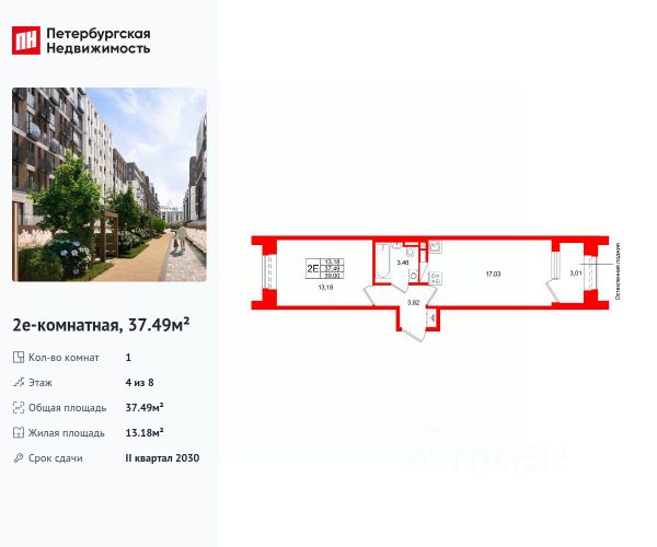 Квартира располагается на 2 этаже 9-этажного дома в ЖК Avant.