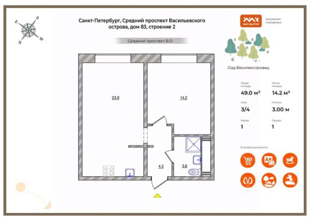 • ✓ Ищете объявления о продаже 1-комнатных квартир на проспекте Средний Васильевского острова в Санкт-Петербурге?