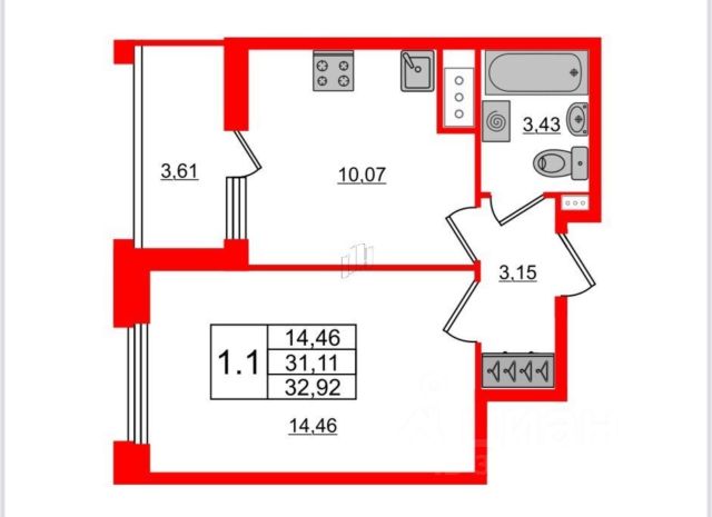 - Просторная кухня-гостиная;