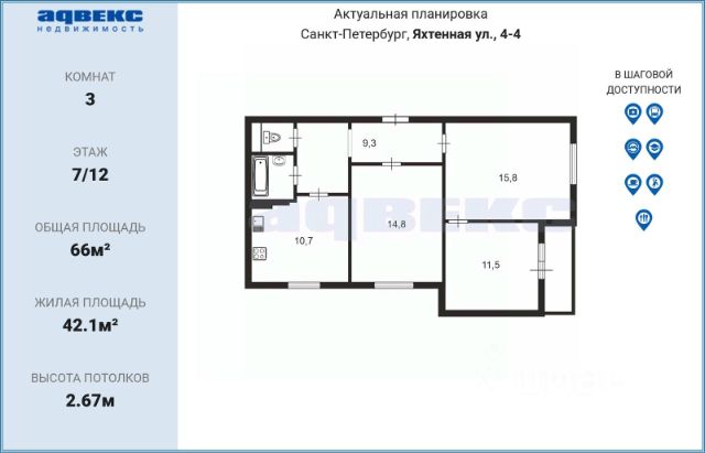 1. Развитая дорожнaя сеть и наземный общeственный транспорт, 4 станции метро, до м. Беговая 20 минут пешком, м. Богатырская (2027г.) будет 10 мин. пешком.
